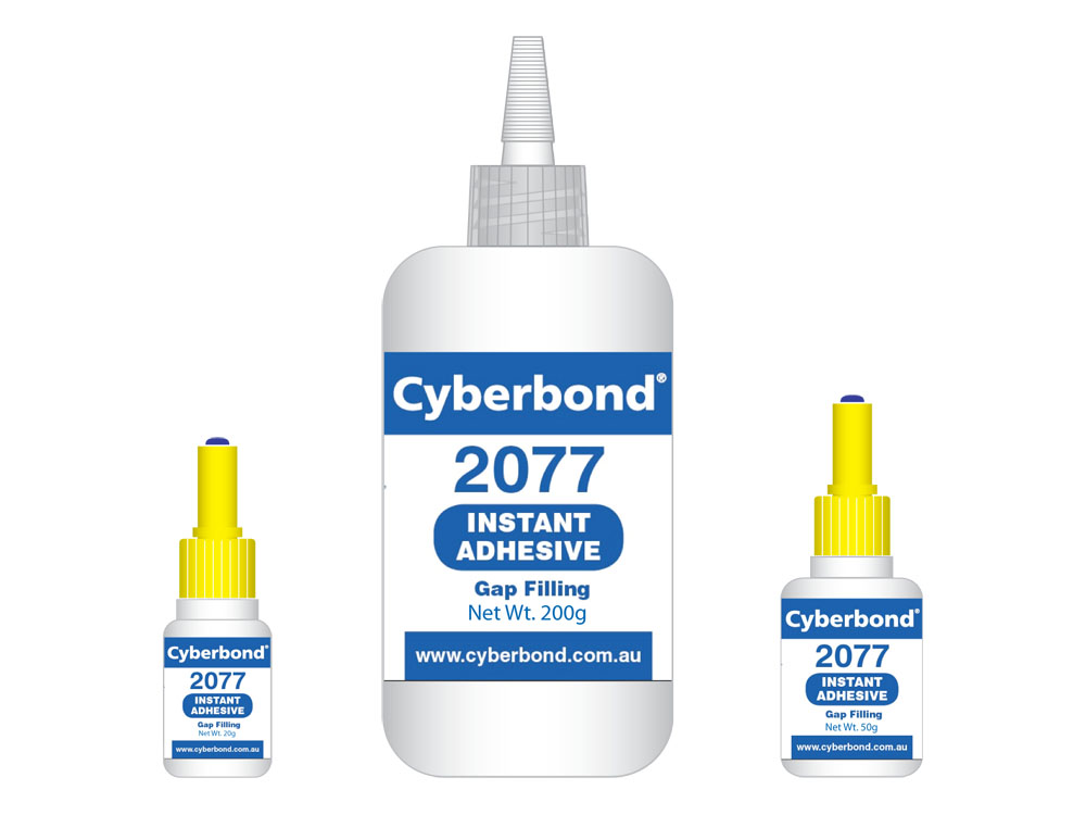 Cyberbond 2077 is a single component medium-high viscosity cyanoacrylate adhesive with a quicker setting speed than most high viscosity products. Suitable for bonding porous materials such as wood, cork, leather as well as most metals, plastics and elastomers. Offers good gap-filling ability and high impact resistance.