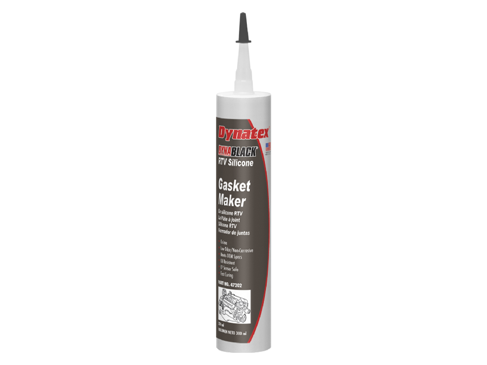 Dynatex® DynaBlack® is a low odor, sensor safe, non-corrosive RTV form in place gasketing compound for pressed pan and mechanical assemblies. Remains flexible through thermal cycling; excellent resistance to oil, water and antifreeze/coolant. Temperature range – 85°F to 500°F.