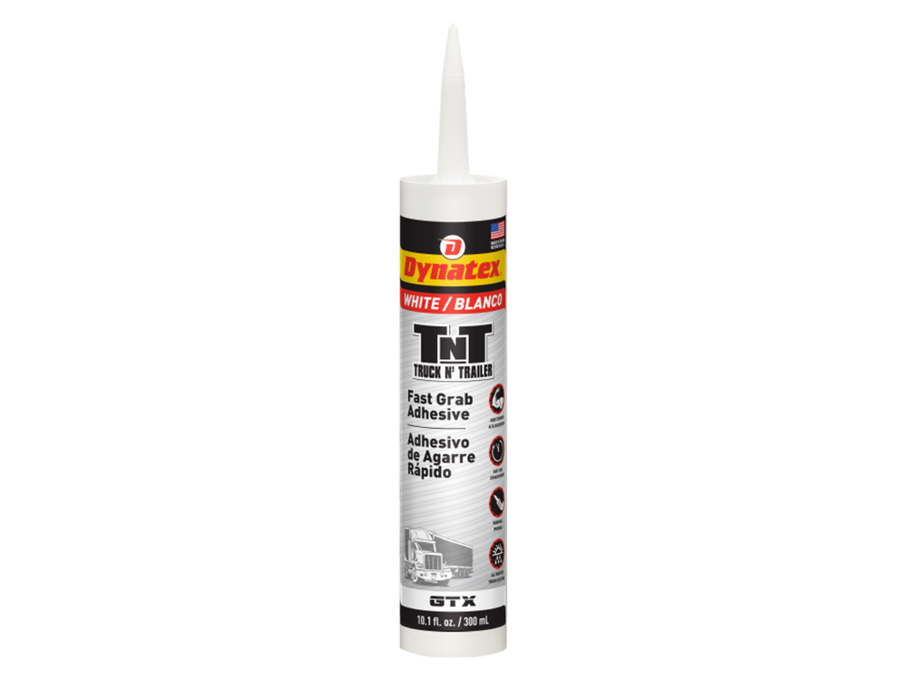 Dynatex® Truck N Trailer Fast Grab Adhesive takes the place of most traditional adhesives and sealants and is designed to resist all on-the-road flexing and vibration. It is fast curing and provides PERMANENT elastic adhesion to most surfaces with both quick grab and excellent durability.